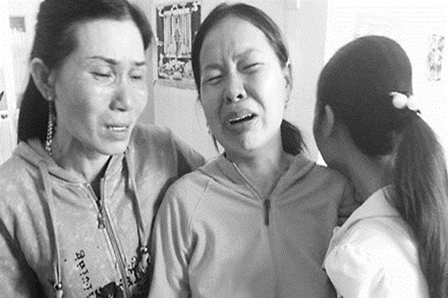 Chị Hà (giữa) đau xót nhìn con trai 2 tháng tuổi lần cuối tại khoa Hồi sức tích cực - chống độc, bệnh viện Nhi đồng 1 TP.HCM.