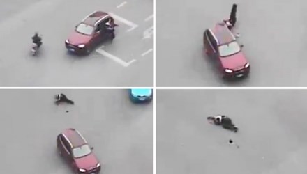 Đoạn clip ghi lại cảnh khi bị cảnh sát giao thông nhắc nhở vì đi sai làn đường, tài xế ô tô không những không chấp hành mà còn cán chết viên cảnh sát. Cư dân mạng Trung Quốc đã bày tỏ sự tức giận đối với hành vi nguy hiểm coi thường pháp luật của người lái xe trên.