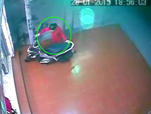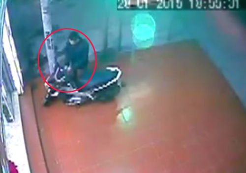 Nam thanh niên ăn mặc lịch sự đến bẻ khóa chiếc tay ga dựng ở vỉa hè bị cô gái phát hiện. Lập tức, hắn liền rời khỏi cửa hàng như không có chuyện gì xảy ra. Hình ảnh vụ trộm được Camera ghi lại