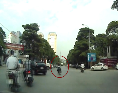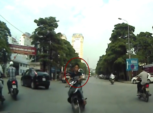 Nam thanh niên không đội mũ bảo hiểm đi xe máy lạng lách, vượt ẩu bất ngờ lao thẳng vào ôtô ngã xuống đường.