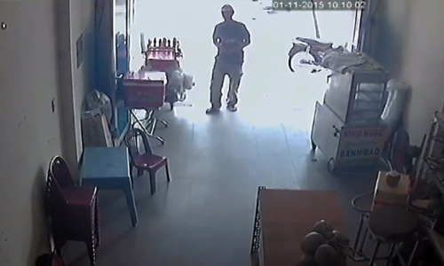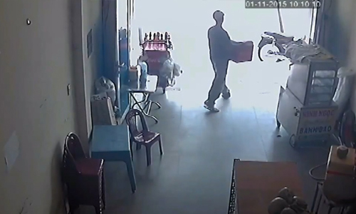 Thanh niên vào quán bánh bao trộm thùng nước ngọt