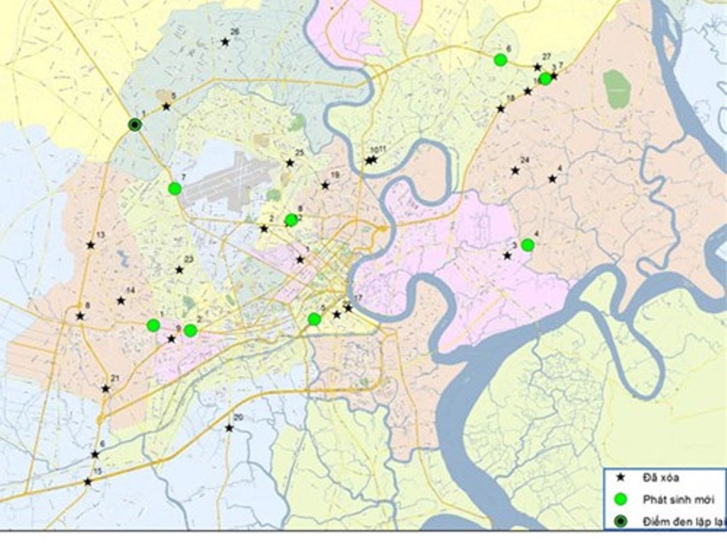 Tuy nhiên, hiện tại TP vẫn còn một điểm đen TNGT là ngã tư An Sương (quận 12) còn xảy tai nạn gây chết người và 8 điểm đen mới phát sinh, gồm: đường Trường Chinh (quận Tân Bình), Phan Đăng Lưu (quận Bình Thạnh), Hồng Bàng (quận 5), vòng xoay Mỹ Thủy (quận 2), nút giao thông Thủ Đức (quận Thủ Đức), tỉnh lộ 10, đường Võ Văn Kiệt và quốc lộ 1A.