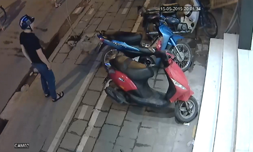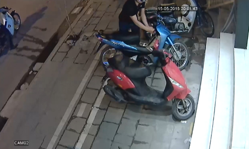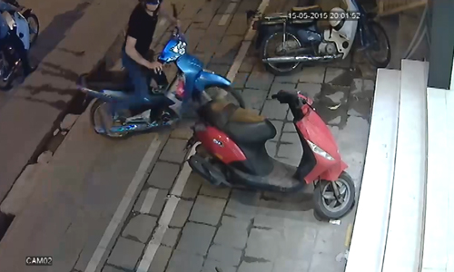 Hai thanh niên đi xe máy dừng trước cửa một căn nhà trên đường Nguyễn Trãi. Người mặc áo đen xuống xe, đứng quan sát rồi tiến về phía chiếc xe số màu xanh dựng bên cạnh chiếc xe tay ga trên vỉa hè. Hắn dùng một vật lạ để bẻ khóa xe số. Chỉ mất vài giây, tên trộm đã bẻ xong khóa và nhanh chóng tẩu thoát cùng chiếc xe. Vụ việc xảy ra mới đây tại một căn nhà trên đường Nguyễn Trãi, Hà Nội.