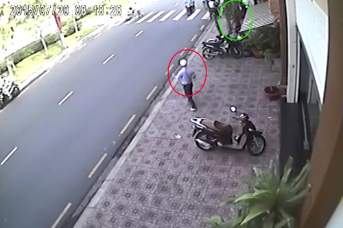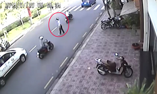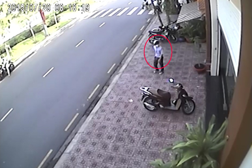 Tên trộm vờ mua ly cà phê để khỏi gây chú ý rồi tiến đến bẻ khóa SH. Một nam thanh niên trong quán cà phê đứng dậy nên tên trộm không dám lấy xe nữa, bỏ đi qua đường như không có chuyện gì. Vụ việc xảy ra vào lúc 8h ngày 20/7 trên đường Hoàng Sa, quận 1, TP HCM.