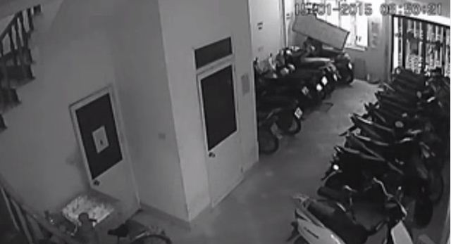 Tên trộm đứng trước cửa nhà, ngó trước, ngó sau rồi thản nhiên vào nhà, đóng cửa, lên tầng 2 mà không biết tất cả các hành động của hắn đang bị các Camera giám sát của tòa nhà ghi lại từ đầu đến cuối.