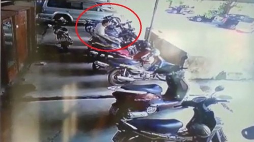 Thắng ( vòng tròn đỏ) bị camera ghi lại hình ảnh