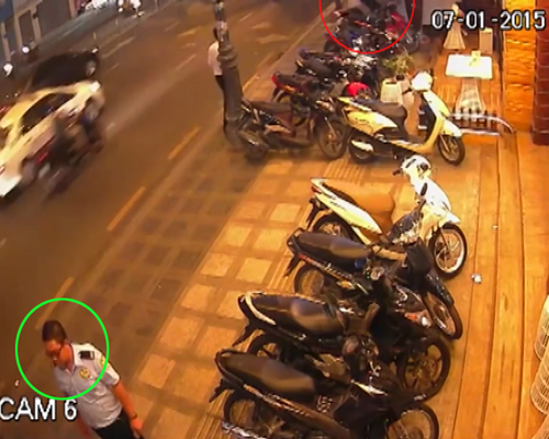 Người bảo vệ vừa quay mặt đi, tên trộm lập tức chạy đến chiếc xe bẻ khóa, rồi nhanh chóng tẩu thoát trước sự ngạc nhiên của người đi đường.