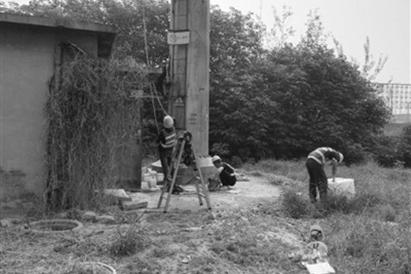 Công nhân ở Hà Bắc lắp đặt camera an ninh để ngăn chặn nông dân đốt rơm rạ.